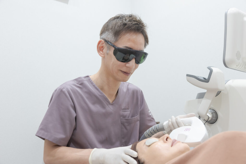 当院では、院長皆木が自ら診察を行います。これまで美容での経験から様々な治療を行ってきました。同じようなシミや肌状態と思っていても人それぞれ違った方法で治療した方が良いケースは多々あります。肌の状態をしっかりと診て最適な治療を行えるようにご案内しております。