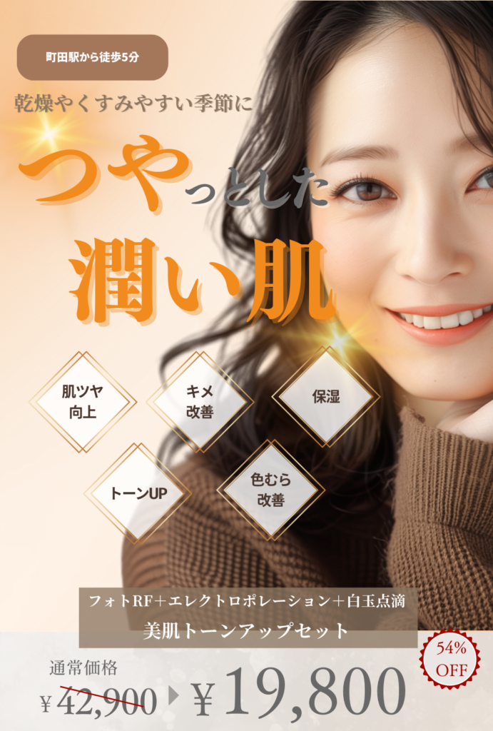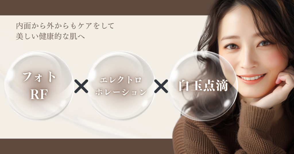 フォトRF・エレクトロポレーションと組み合わせることで、外側と内側の両面から手軽に美肌ケアを取り入れたい方に選ばれています。